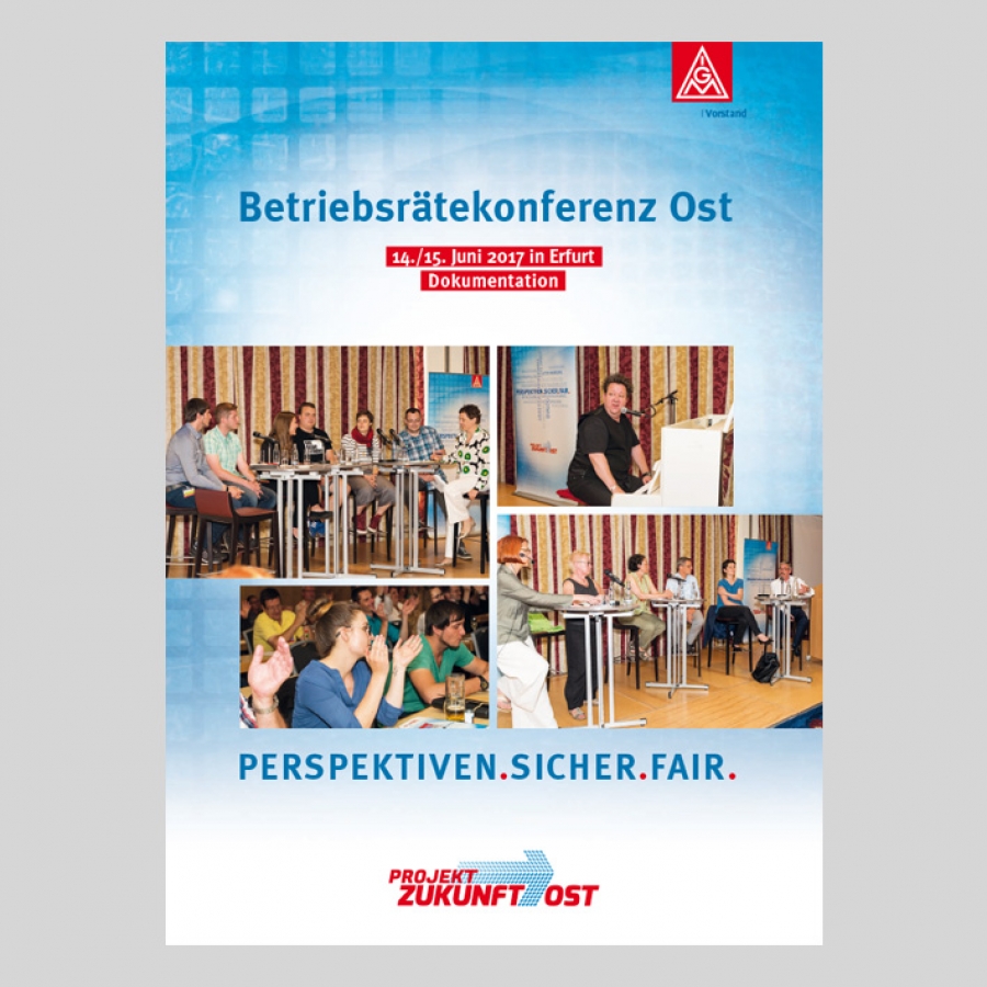 Broschüre „Betriebsrätekonferenz Ost“, Design und Content